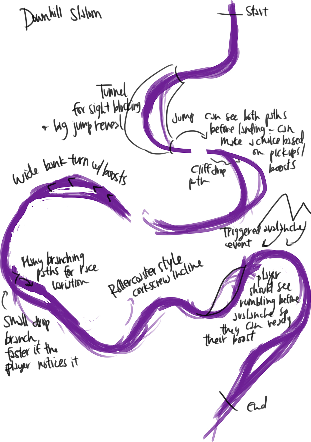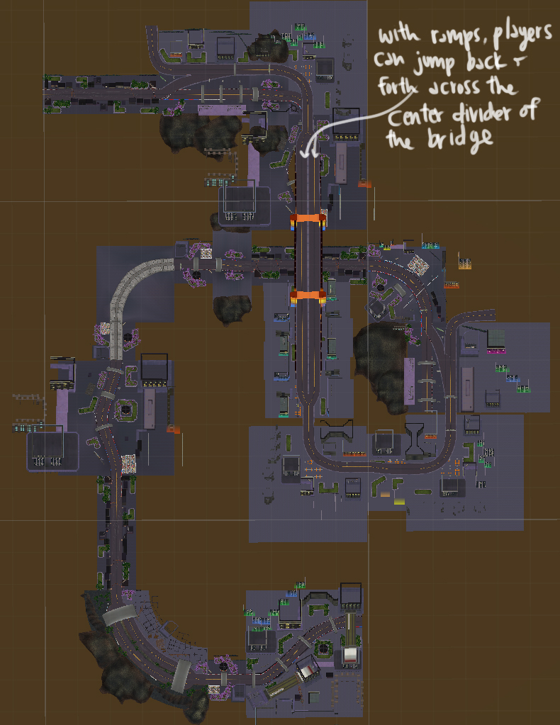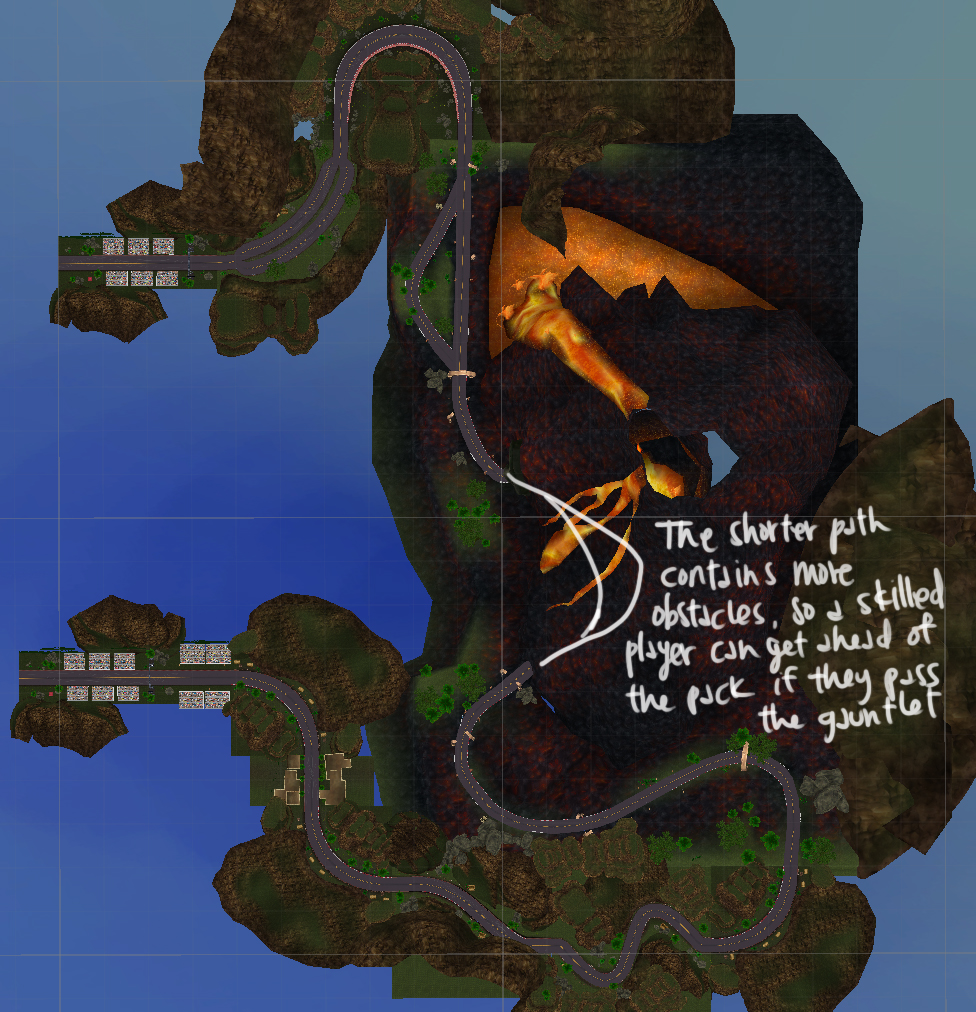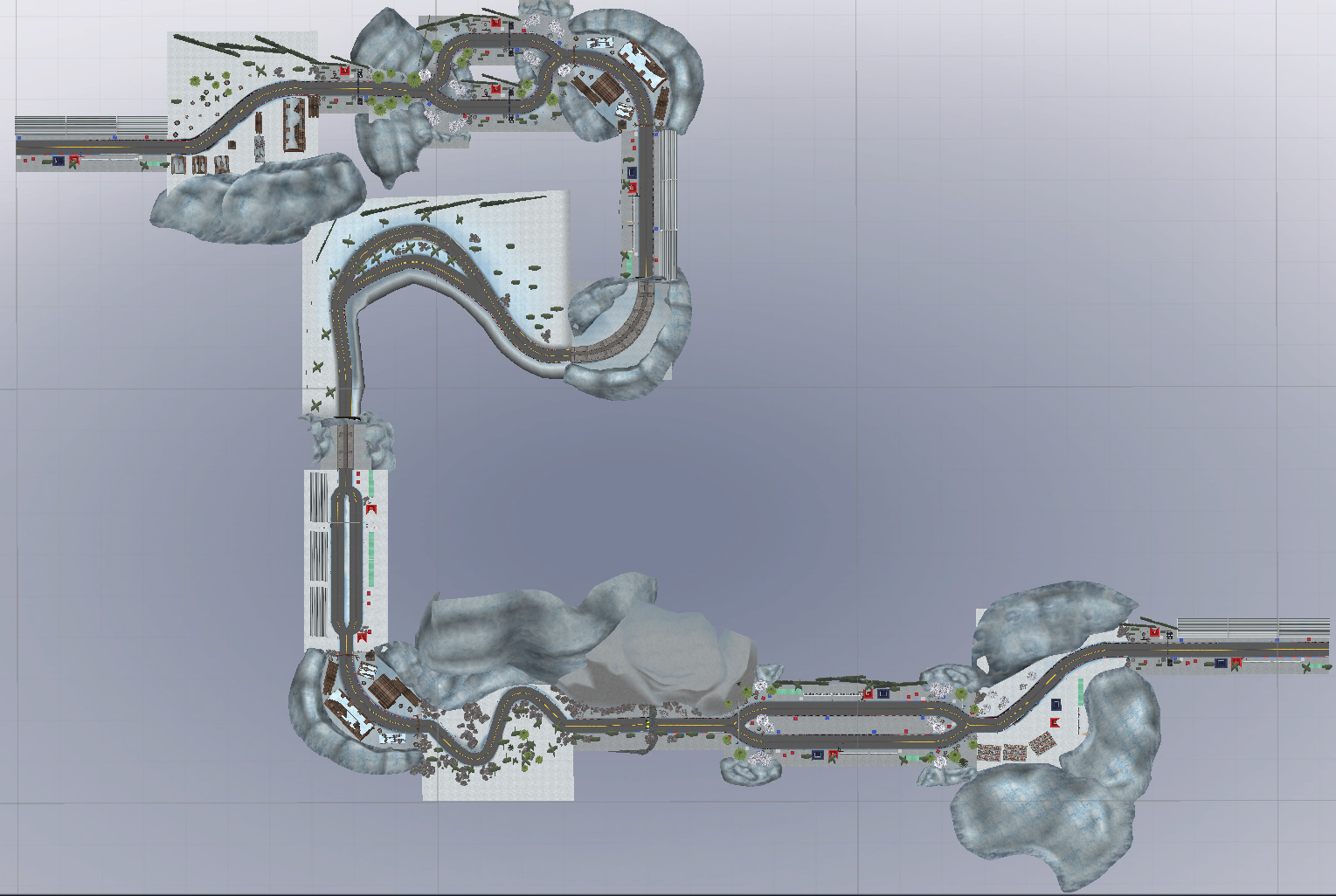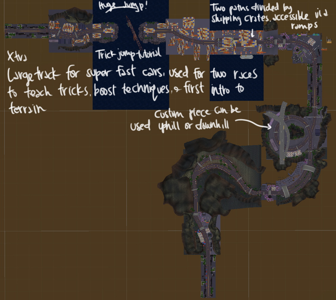 I have spent a year at Glu Mobile as a Senior Level Designer on Car Town Racing, a mobile racing game set in a universe where race tracks featuring huge jumps for midair tricks and high-tech portals that teleport you to exotic locations are the norm. I was charged with building fun races balanced for a variety of different car classes (such as drag, off-road, and drift), designing and rapidly prototyping new tracks, creating a spec and track piece designs for a modular track building system, and modeling 3D tracks and track pieces. I also helped with setting up the timing for triggered events on our tracks, for example nearing the volcano will cause it to begin to erupt and fiery rock debris will rain down on the track. The most important part of designing these tracks and putting them together was ensuring that all road pieces offered opportunities for fun gameplay regardless of what pieces they were connected to or how they were dressed, as we would end up using these same modular pieces over and over to build a wide variety of tracks. As we continue adding to the game, I will design new track pieces and events that take advantage of the different strengths of our car classes as well as fit in with the somewhat fantastical nature of the game. We already have future biomes and tracks planned, and I will update this page with beauty shots from actual races as the game arrives in beta later in March 2017. |