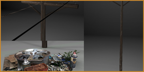 This scene is built up of pieces that were modelled in 3D Studio Max and Zbrush, then exported to the Unreal Tournament 3 Editor. This was a group project undertaken by myself, AJ Ramos, Jira Fuangfoo, and Kurt Rolfig. Below are the finished screenshots as well as screens of the individual assets I created. I also worked with AJ to light the scene and decorate it. |