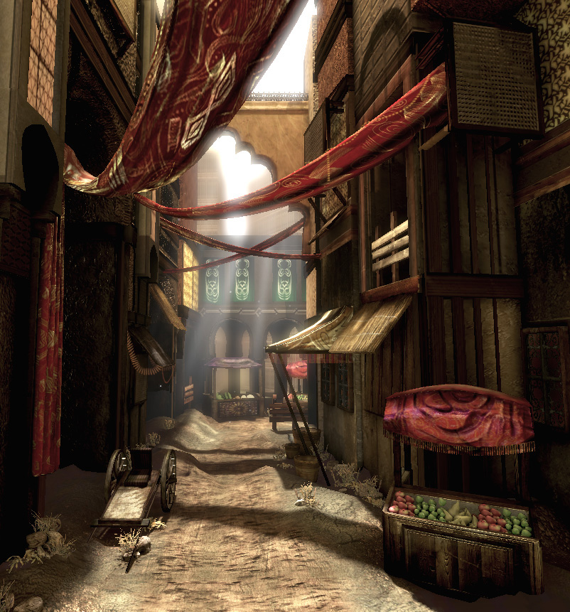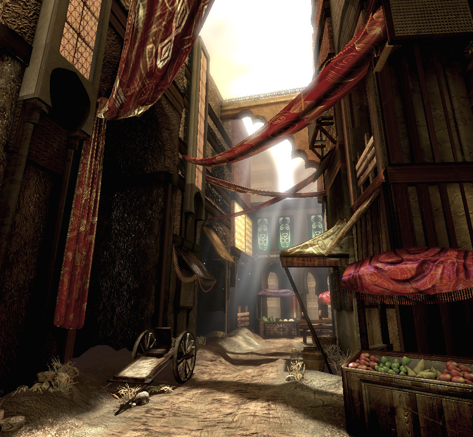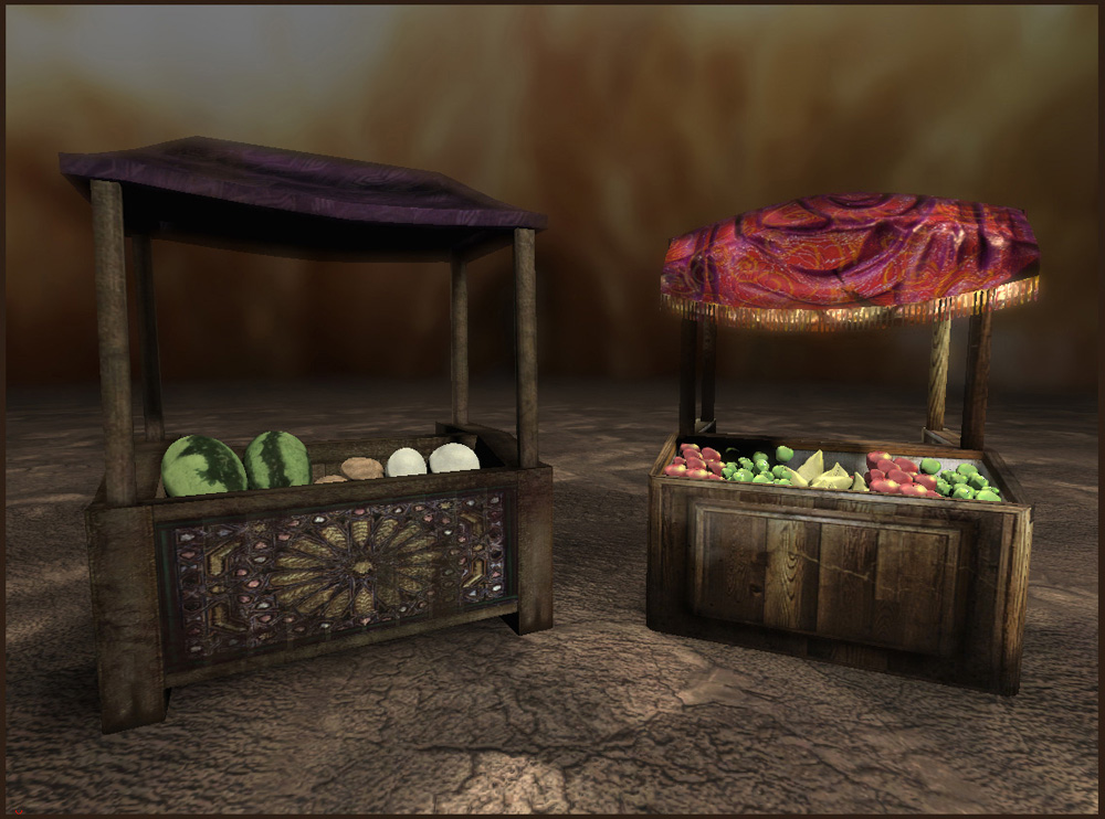 Guild Wars is one of my favorite games and I have a deep respect for its concept artist team. I wanted to try my hand at creating a scene based on one of their concepts and this is what I came up with. My favorite part was painting the fruit stalls and building the cloth banners, I got to create unique patterns for both and was able to hand paint a lot of the details.