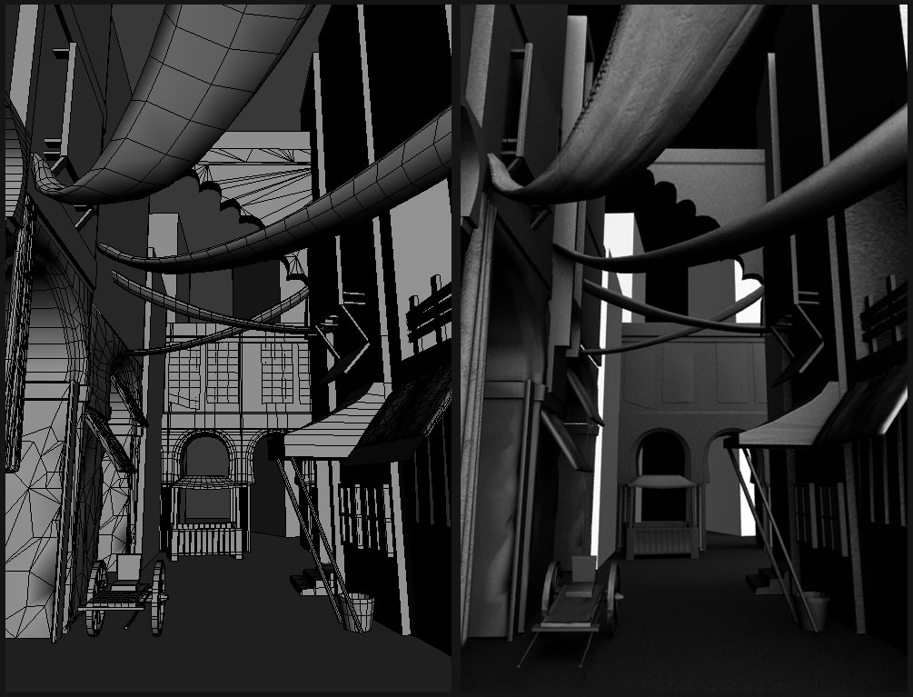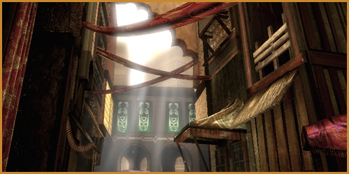 This scene was created based on a concept by one of the members of the Guild Wars art team. It was created using a variety of tools including Photoshop, 3DS Max, ZBrush, and it is presented in the Unreal Engine.