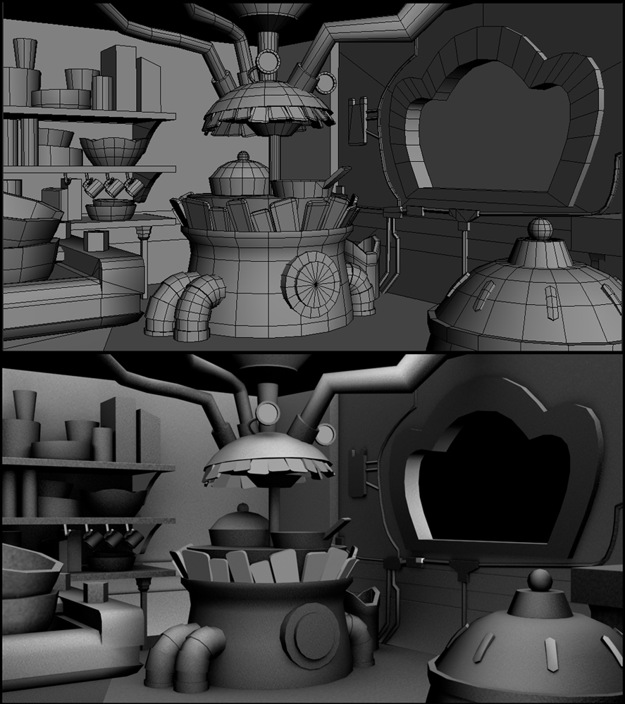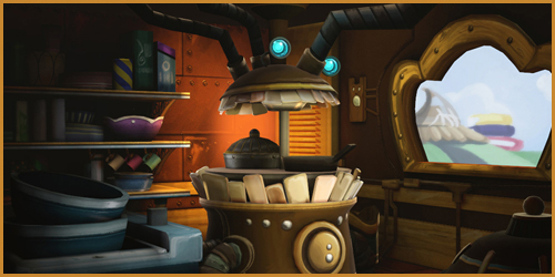When I first saw the concept for this piece I knew right away I wanted to build it. The stove in the center had so much personality, it looked to me like it was smiling. I spent a lot of time hand painting all of the little details in the scene and every single texture was painted from scratch. My favorite part is probably the "eyes" of the stove, I felt that they really helped bring it to life.