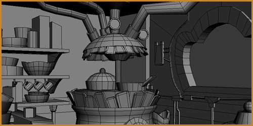 In total it took around 32 hours to complete this scene, including modelling, unwrapping, hand painting textures, and setting up and lighting the scene. It is built up of 5,016 quads/9,587 tris.