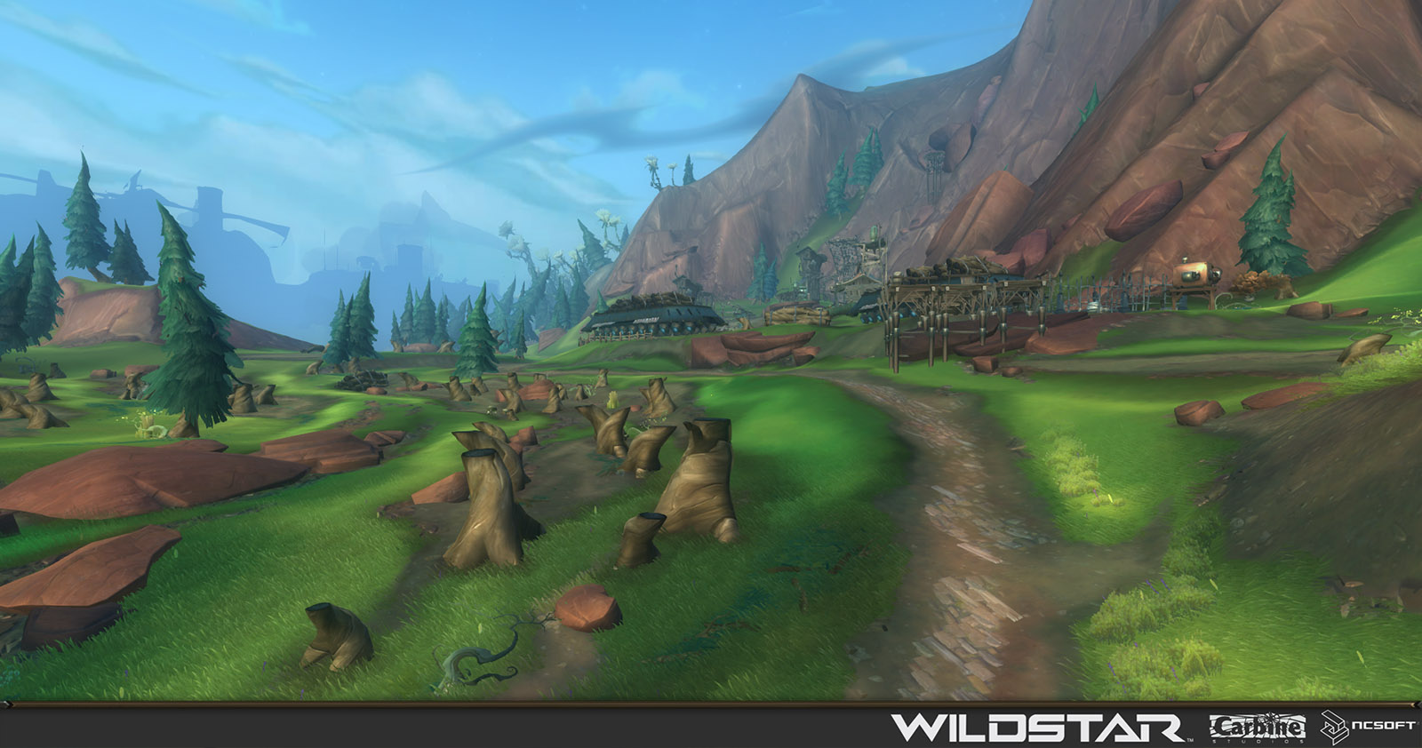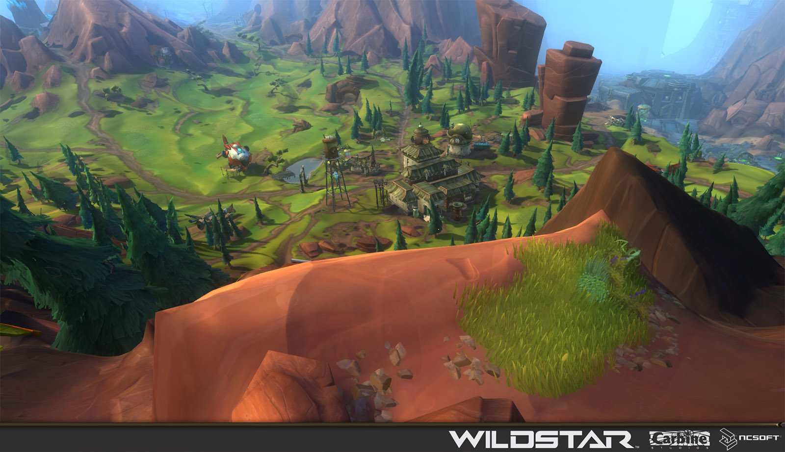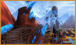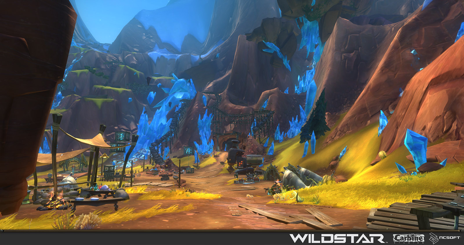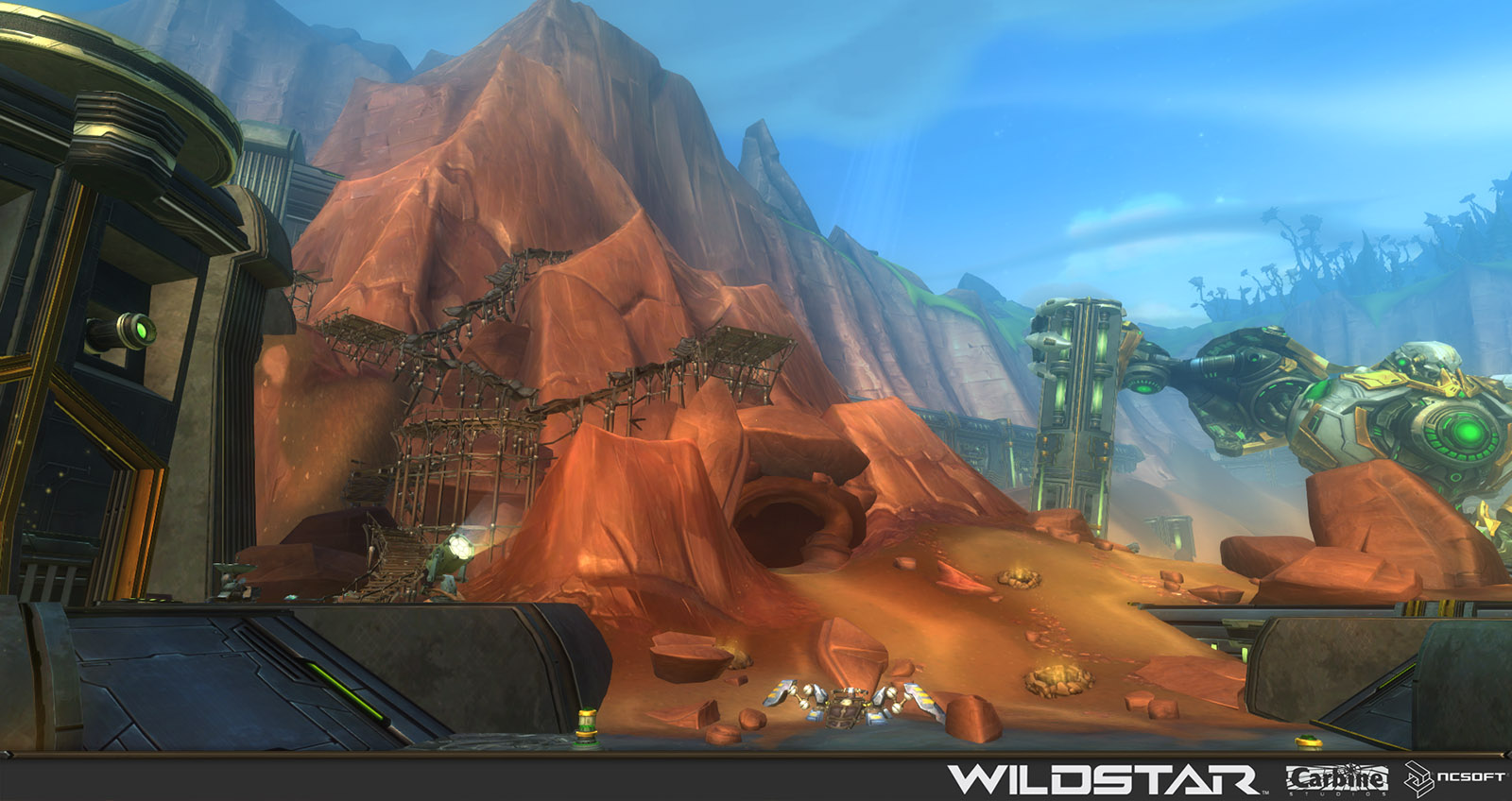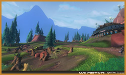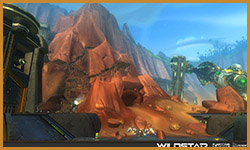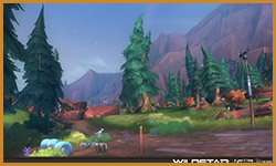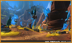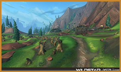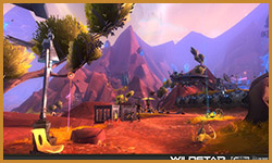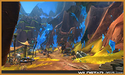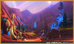 Algoroc is one of the 6 - 14 zones of WildStar on the Exile faction side. Algoroc had been through several iterations before me when I finally inherited it, and the work I am showcasing here is what ultimately made it into the shipped game. One of the unique things about WildStar is the ability for us to paint color as an overlay to the ground textures we would paint on to the terrain. This allowed us to create fine color detail and give the illusion of terrain features while keeping the ground flat enough for players to safely fight battles on. In Algoroc, I sculpted and re-sculpted many mountains, rebuilt the towns of Tremor Ridge and Gallow twice, and carved a giant hole in the ground to serve as an Eldan excavation site. It was as much of an adventure to build as it is to play! |