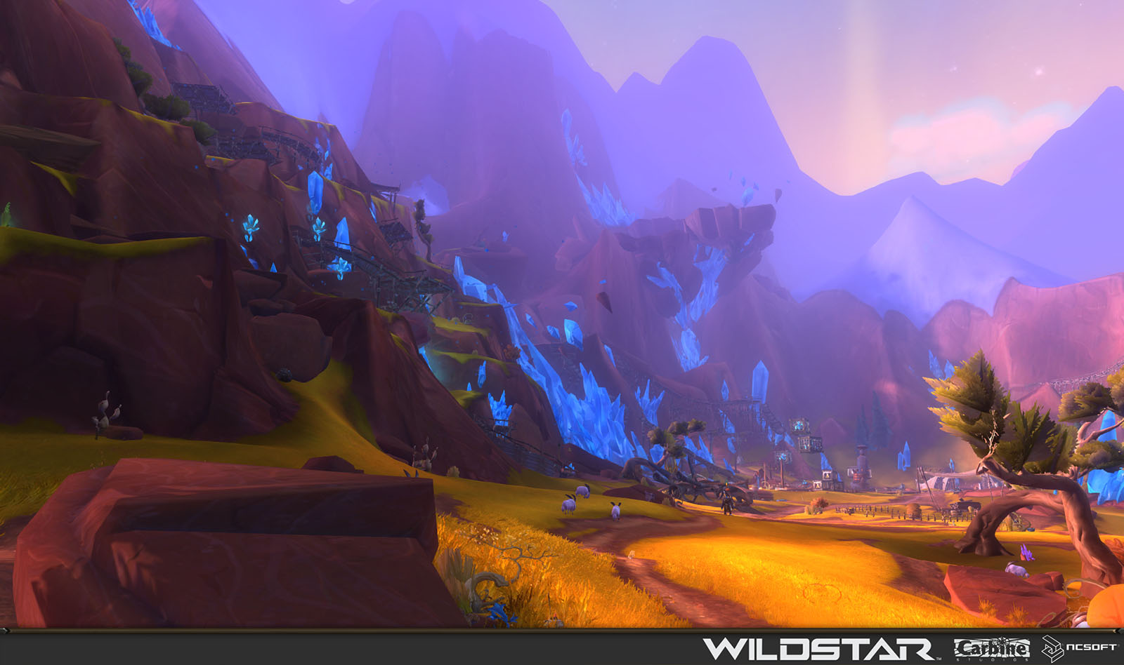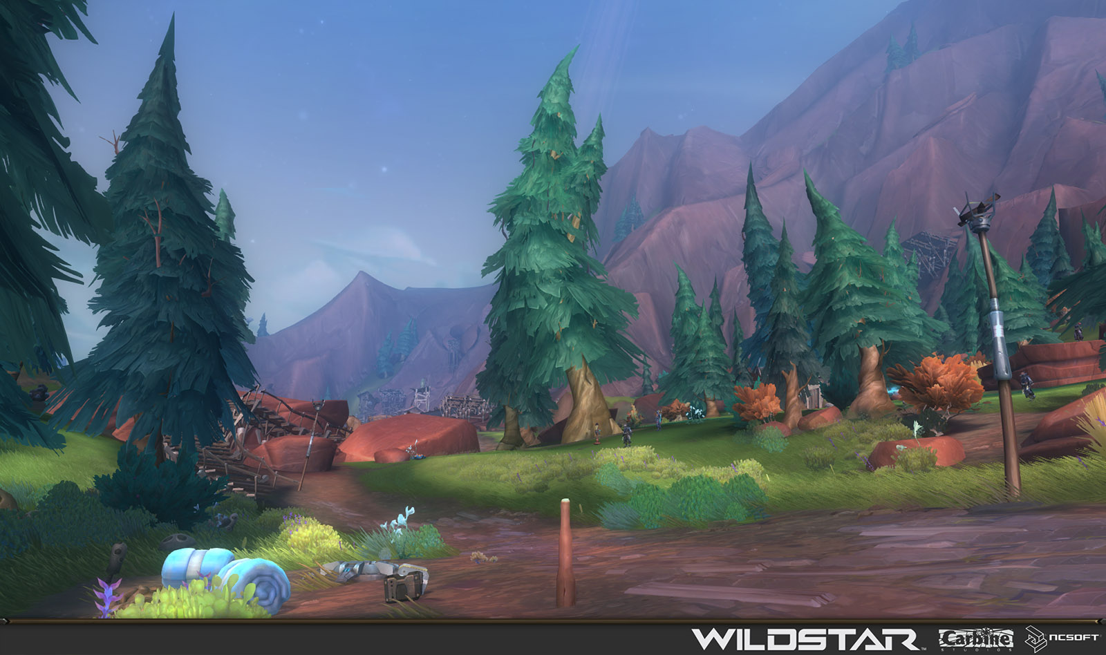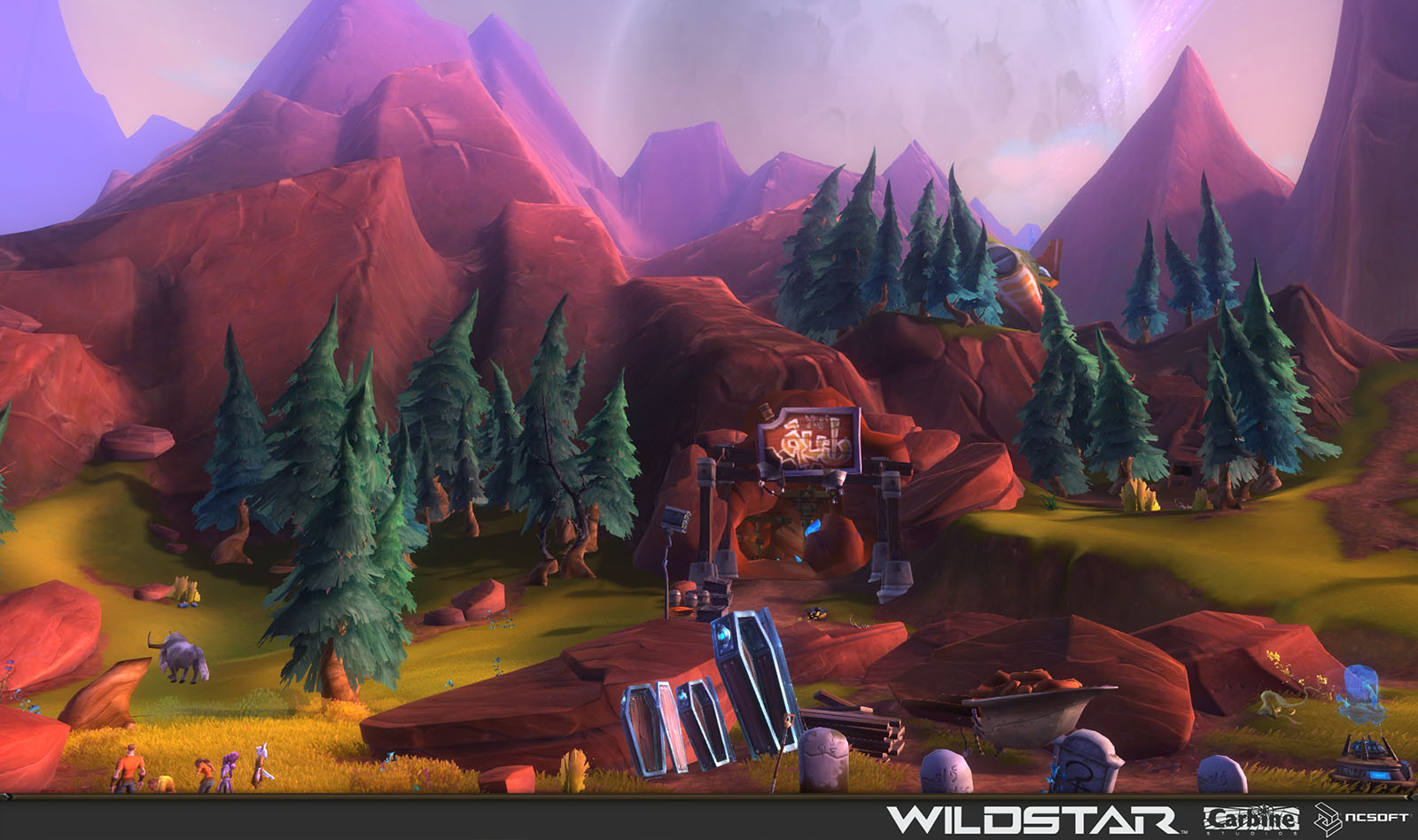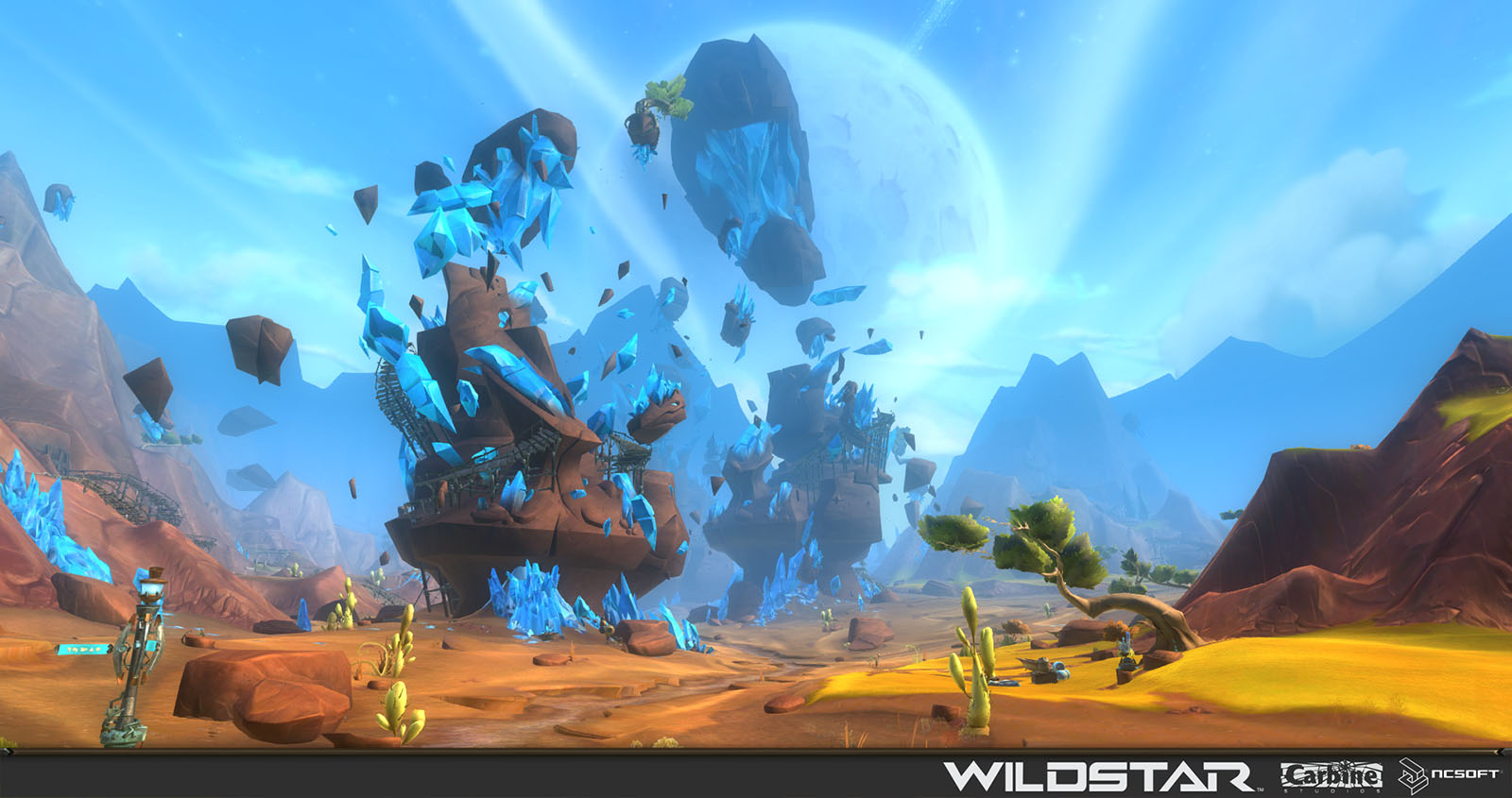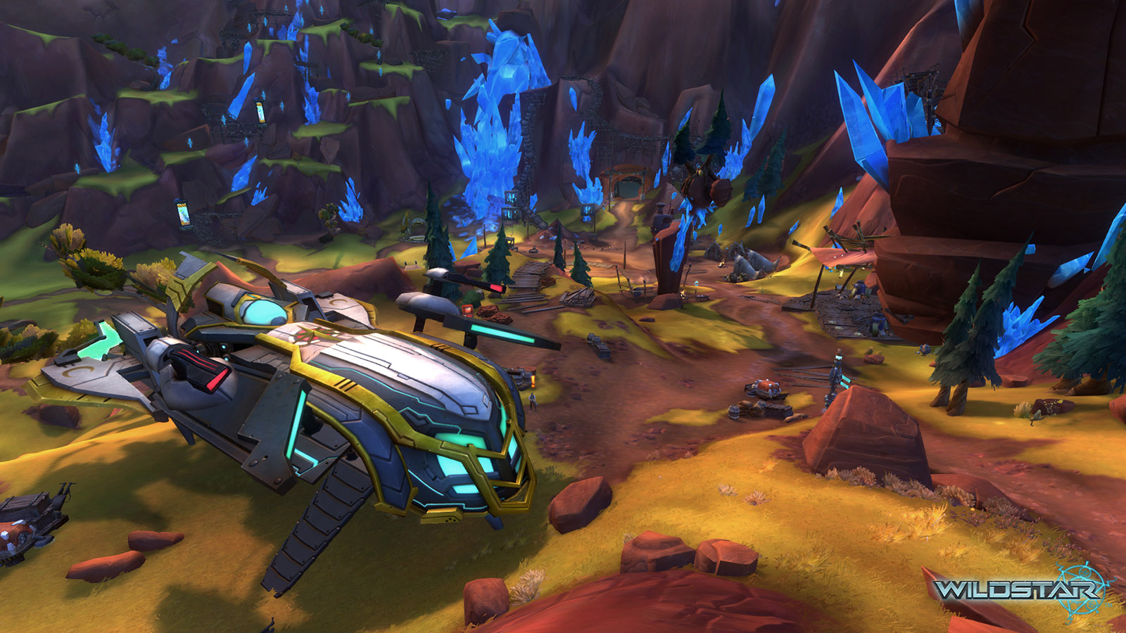Algoroc is one of the 6 - 14 zones of WildStar on the Exile faction side. Algoroc had been through several iterations before me when I finally inherited it, and the work I am showcasing here is what ultimately made it into the shipped game. One of the unique things about WildStar is the ability for us to paint color as an overlay to the ground textures we would paint on to the terrain. This allowed us to create fine color detail and give the illusion of terrain features while keeping the ground flat enough for players to safely fight battles on. In Algoroc, I sculpted and re-sculpted many mountains, rebuilt the towns of Tremor Ridge and Gallow twice, and carved a giant hole in the ground to serve as an Eldan excavation site. It was as much of an adventure to build as it is to play! |