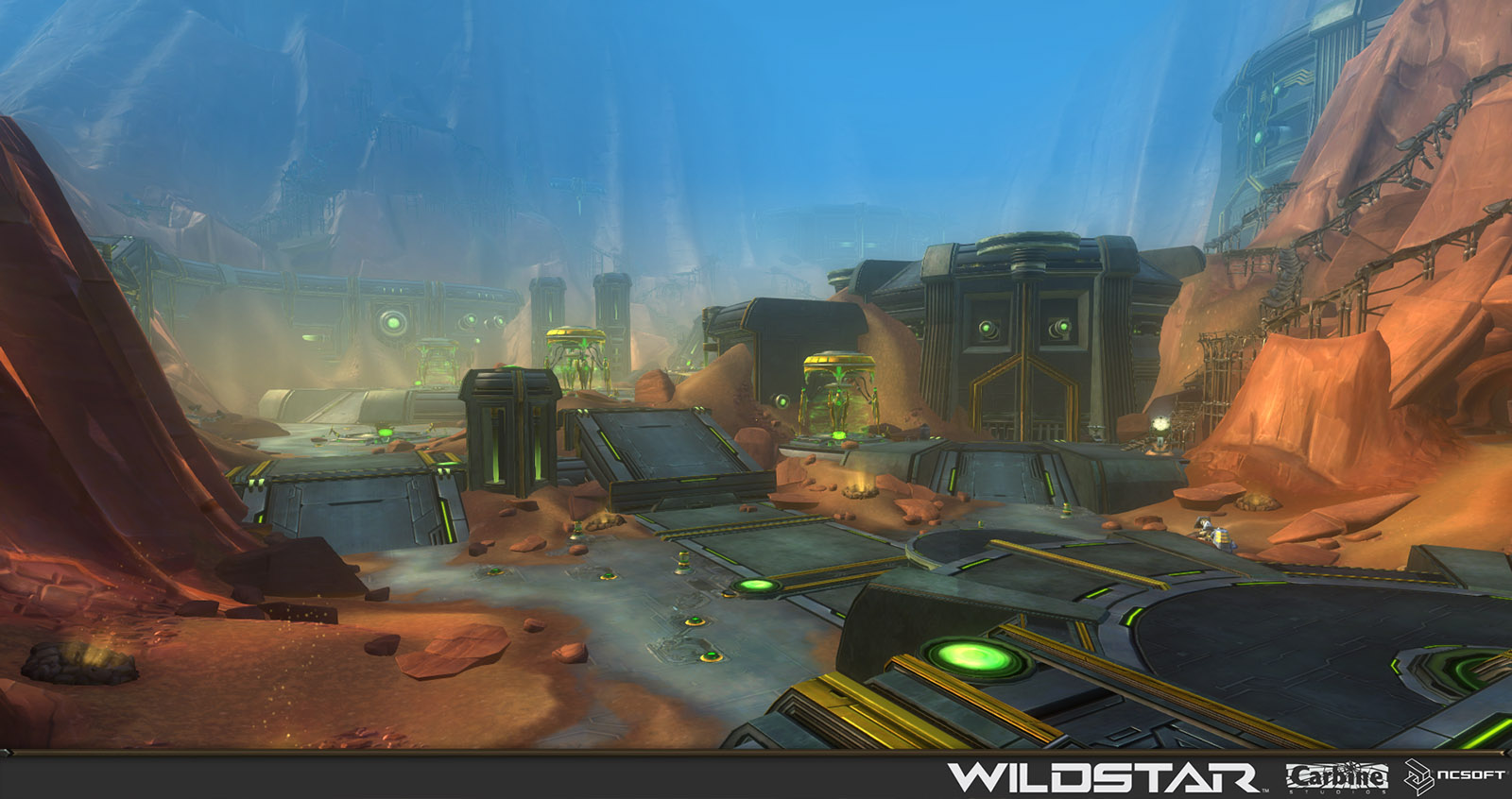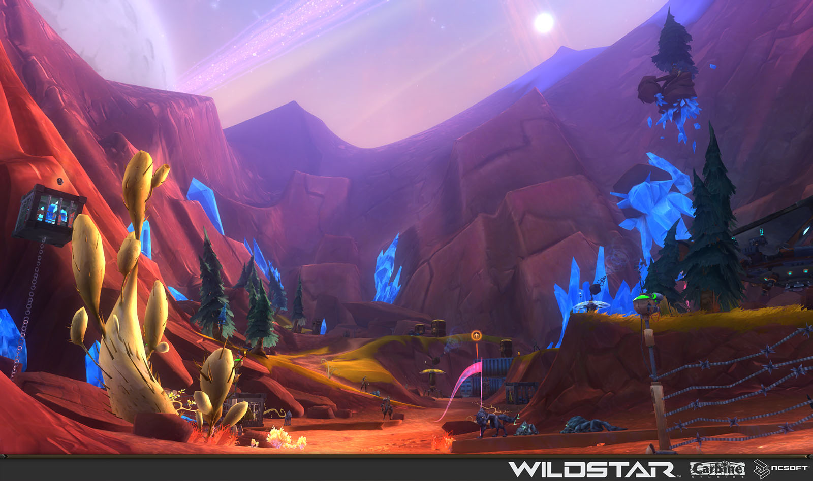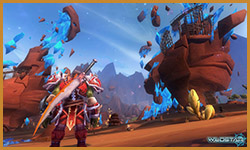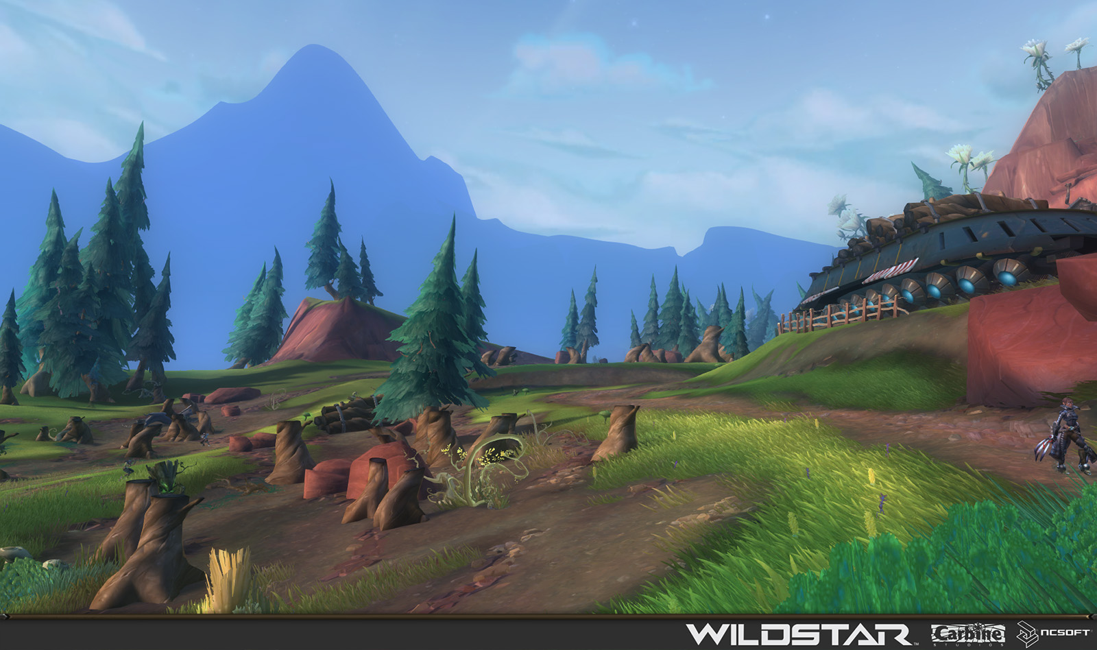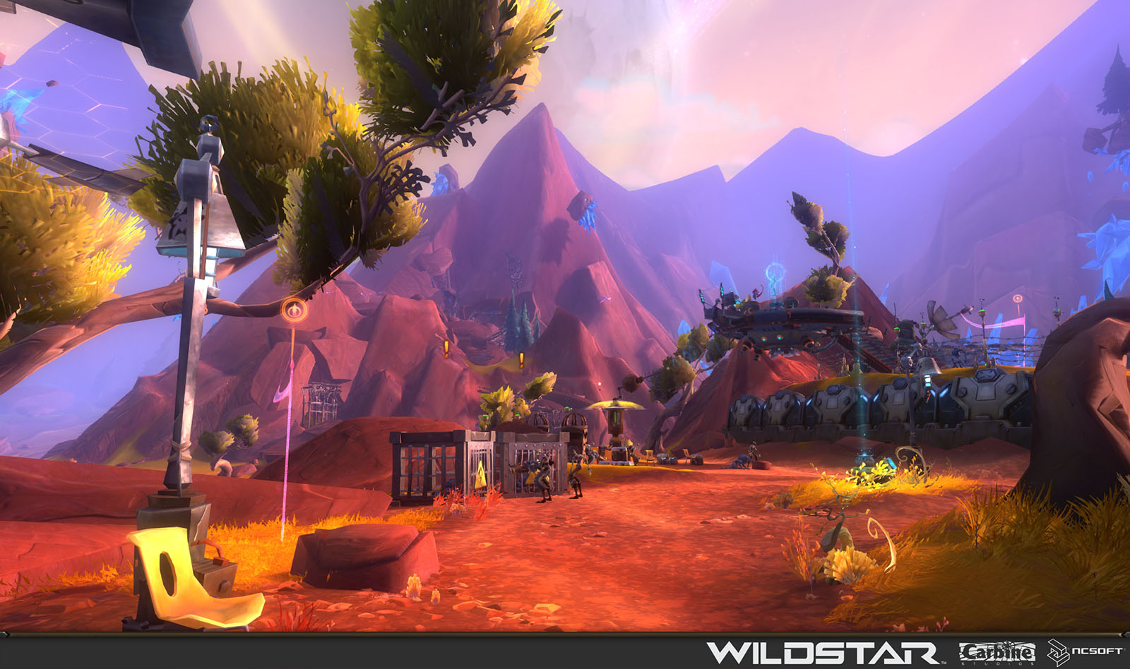 Algoroc is one of the 6 - 14 zones of WildStar on the Exile faction side. Algoroc had been through several iterations before me when I finally inherited it, and the work I am showcasing here is what ultimately made it into the shipped game. One of the unique things about WildStar is the ability for us to paint color as an overlay to the ground textures we would paint on to the terrain. This allowed us to create fine color detail and give the illusion of terrain features while keeping the ground flat enough for players to safely fight battles on. In Algoroc, I sculpted and re-sculpted many mountains, rebuilt the towns of Tremor Ridge and Gallow twice, and carved a giant hole in the ground to serve as an Eldan excavation site. It was as much of an adventure to build as it is to play! |