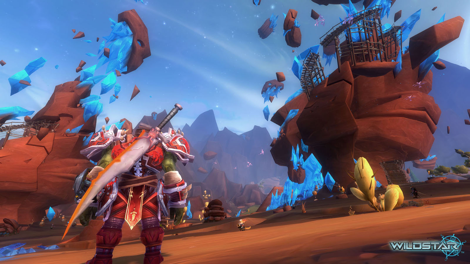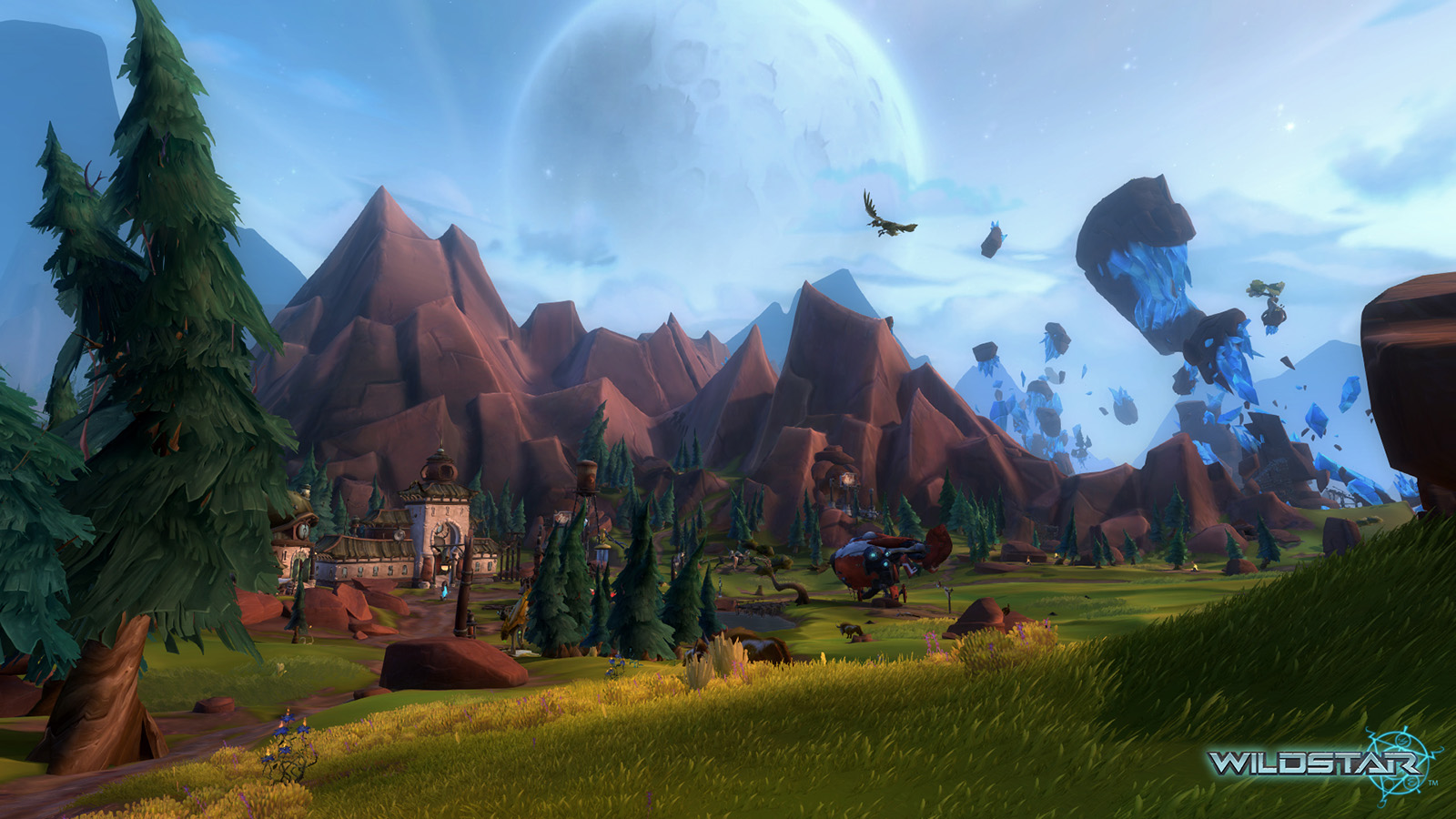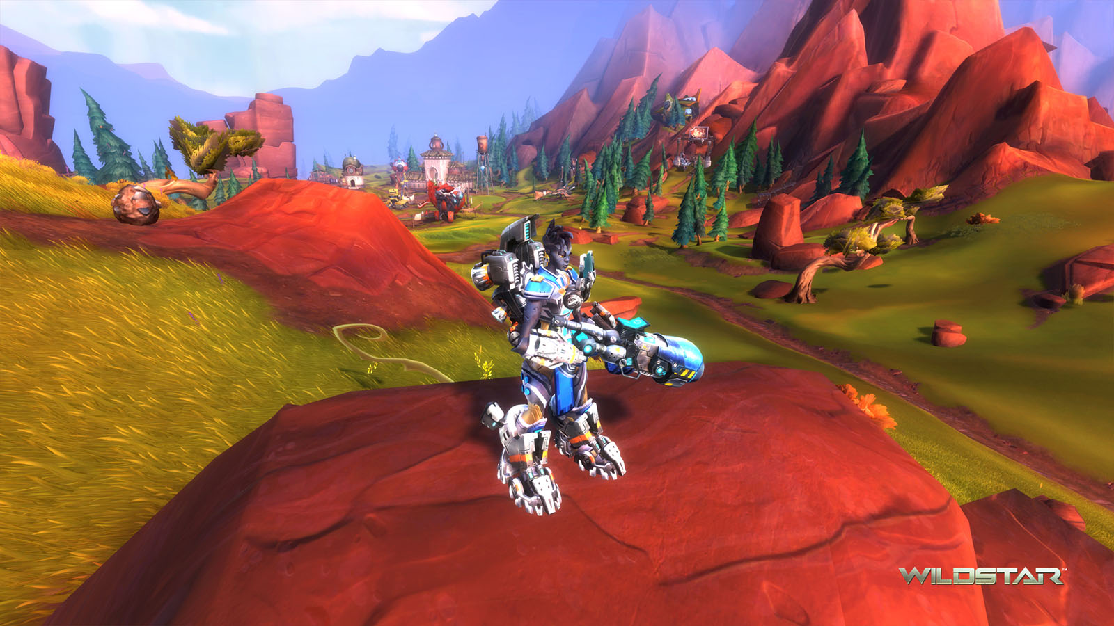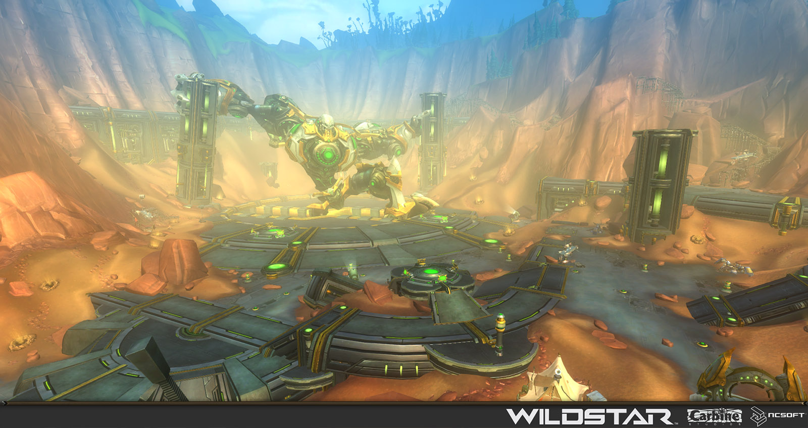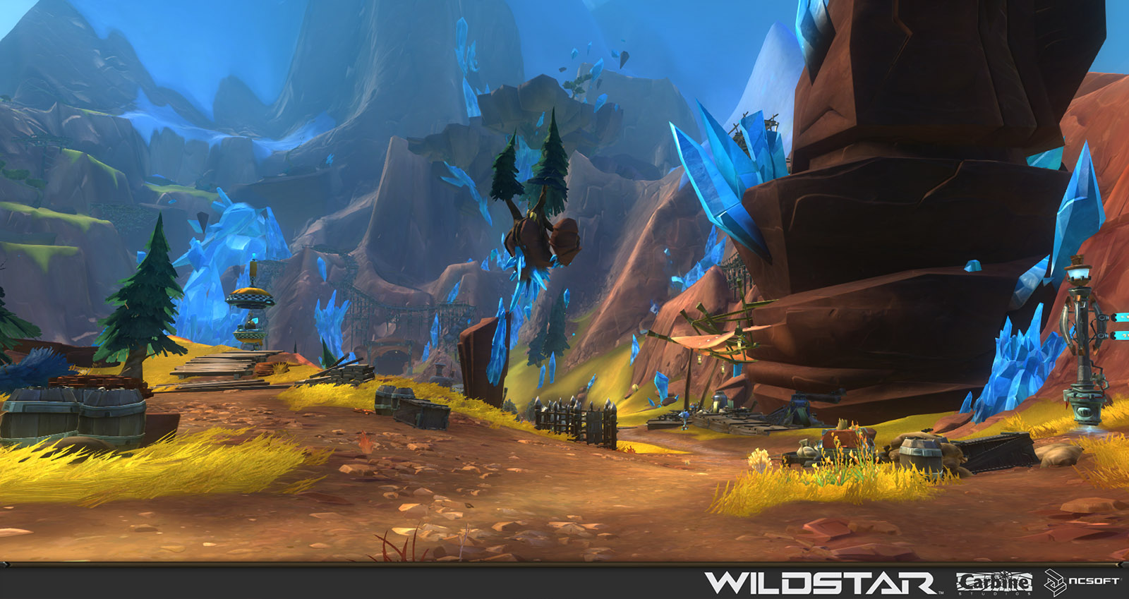 Algoroc is one of the 6 - 14 zones of WildStar on the Exile faction side. Algoroc had been through several iterations before me when I finally inherited it, and the work I am showcasing here is what ultimately made it into the shipped game. One of the unique things about WildStar is the ability for us to paint color as an overlay to the ground textures we would paint on to the terrain. This allowed us to create fine color detail and give the illusion of terrain features while keeping the ground flat enough for players to safely fight battles on. In Algoroc, I sculpted and re-sculpted many mountains, rebuilt the towns of Tremor Ridge and Gallow twice, and carved a giant hole in the ground to serve as an Eldan excavation site. It was as much of an adventure to build as it is to play! |