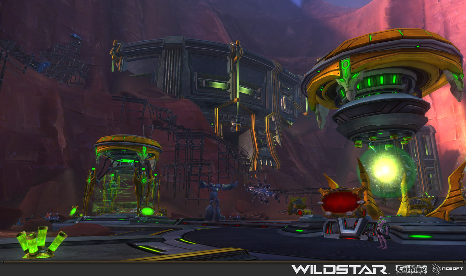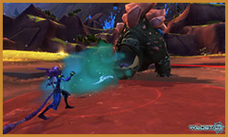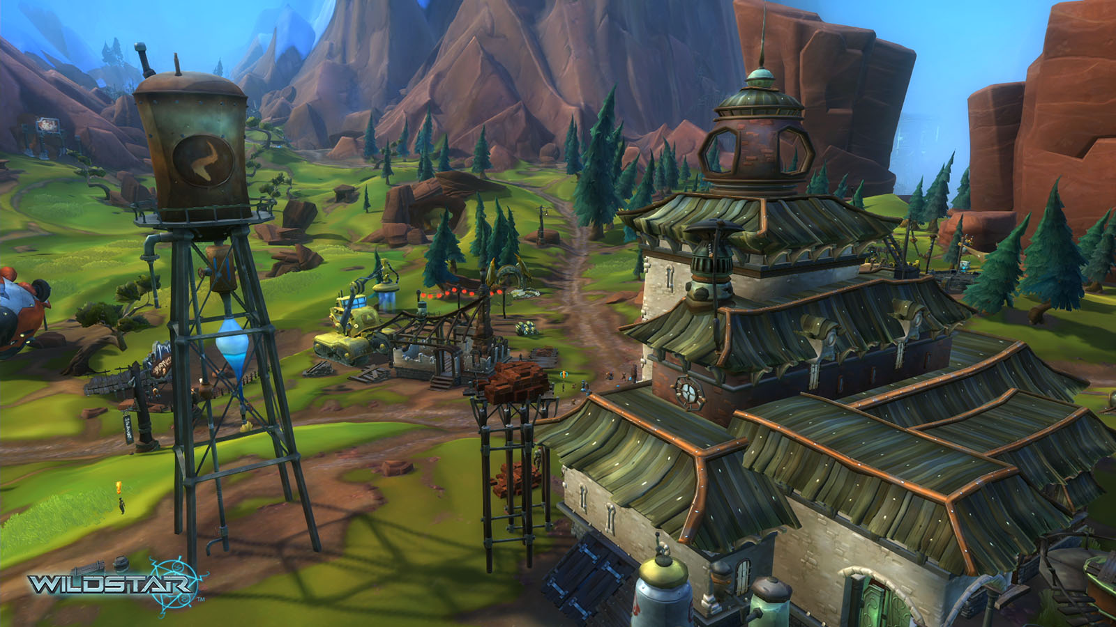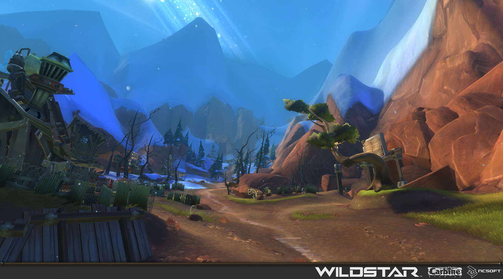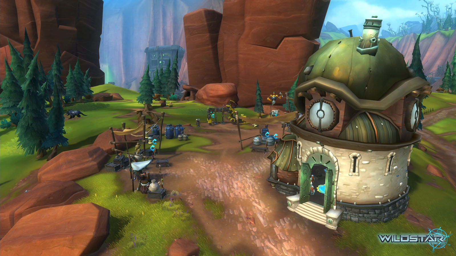 Algoroc is one of the 6 - 14 zones of WildStar on the Exile faction side. Algoroc had been through several iterations before me when I finally inherited it, and the work I am showcasing here is what ultimately made it into the shipped game. One of the unique things about WildStar is the ability for us to paint color as an overlay to the ground textures we would paint on to the terrain. This allowed us to create fine color detail and give the illusion of terrain features while keeping the ground flat enough for players to safely fight battles on. In Algoroc, I sculpted and re-sculpted many mountains, rebuilt the towns of Tremor Ridge and Gallow twice, and carved a giant hole in the ground to serve as an Eldan excavation site. It was as much of an adventure to build as it is to play! |