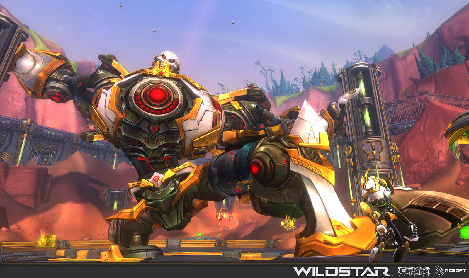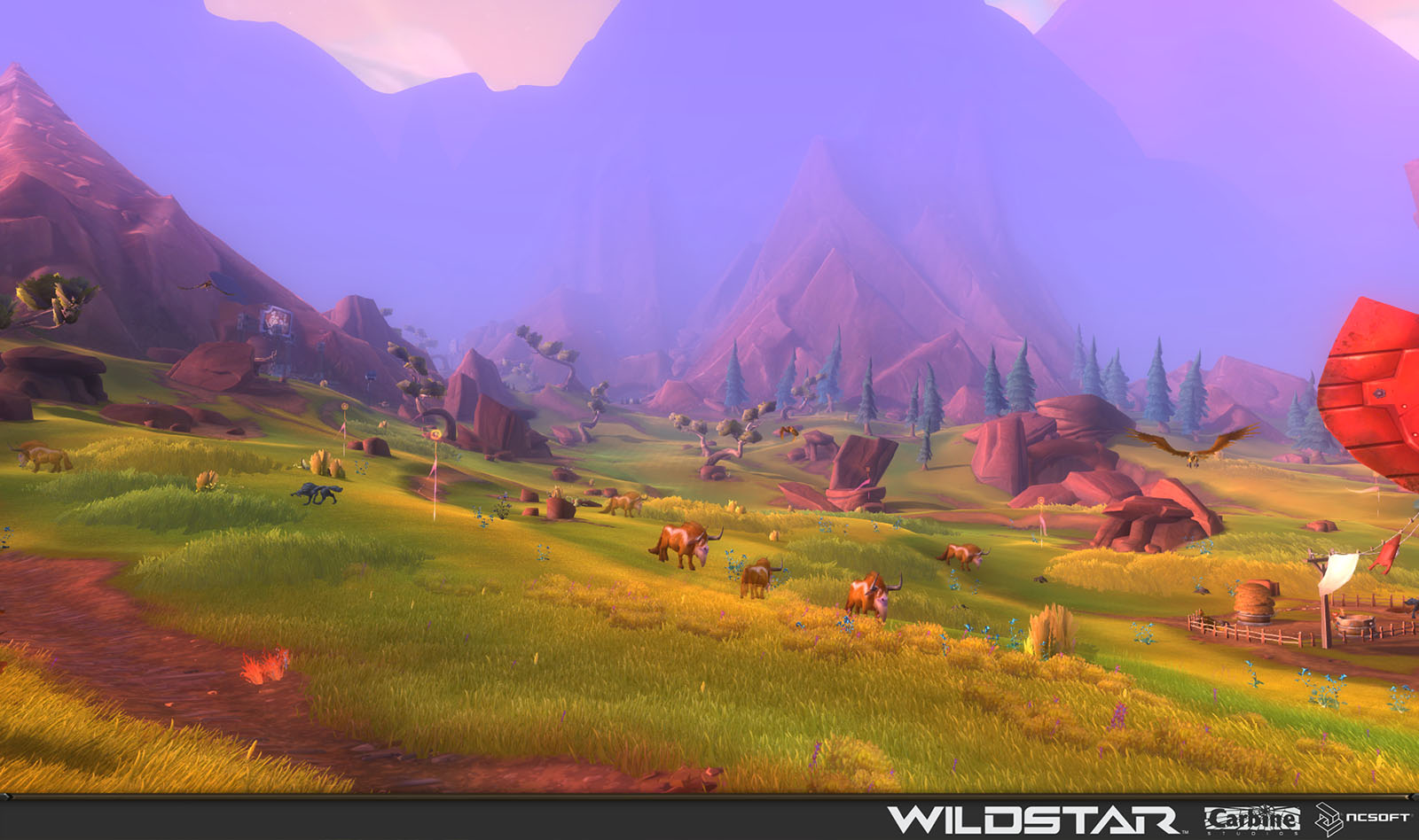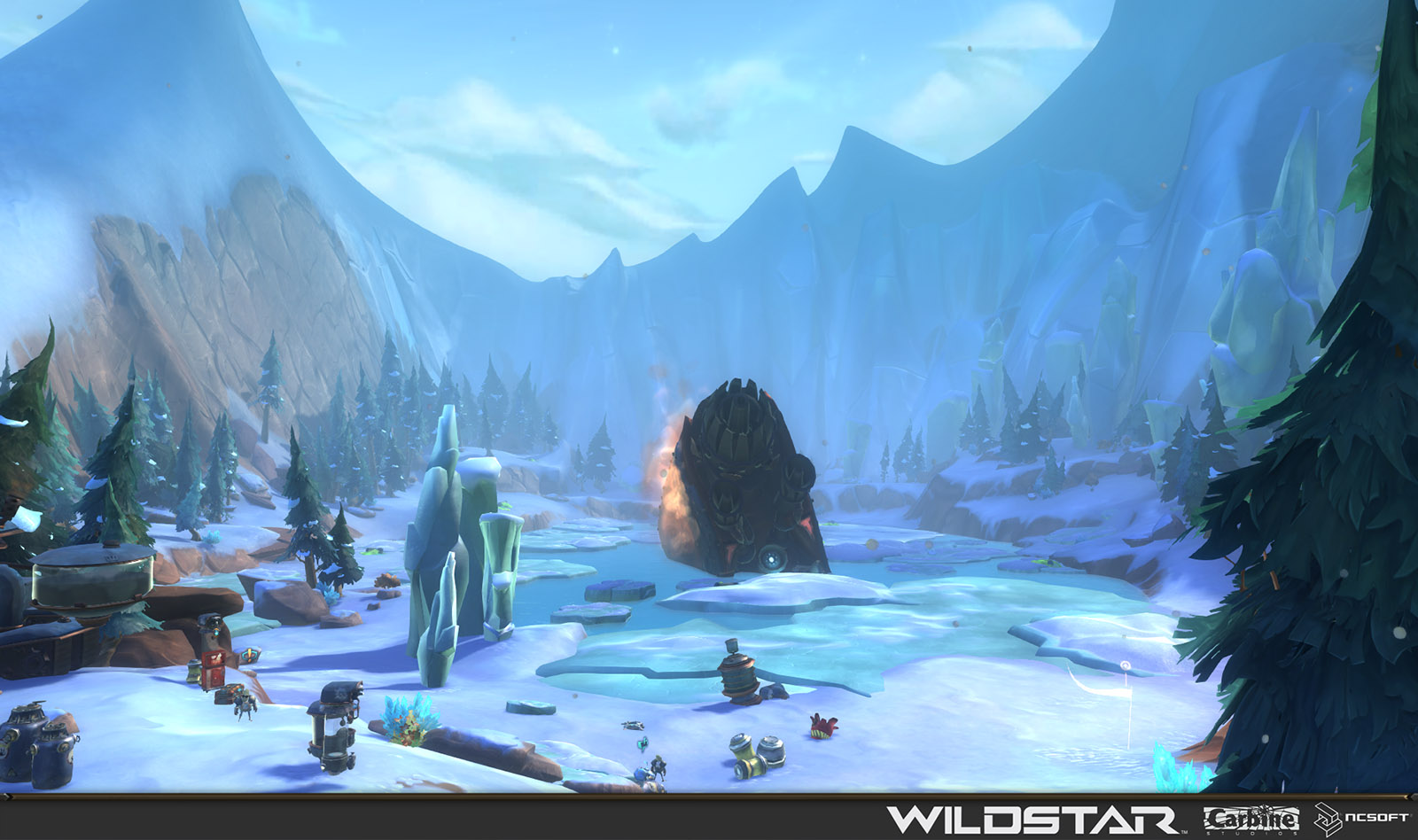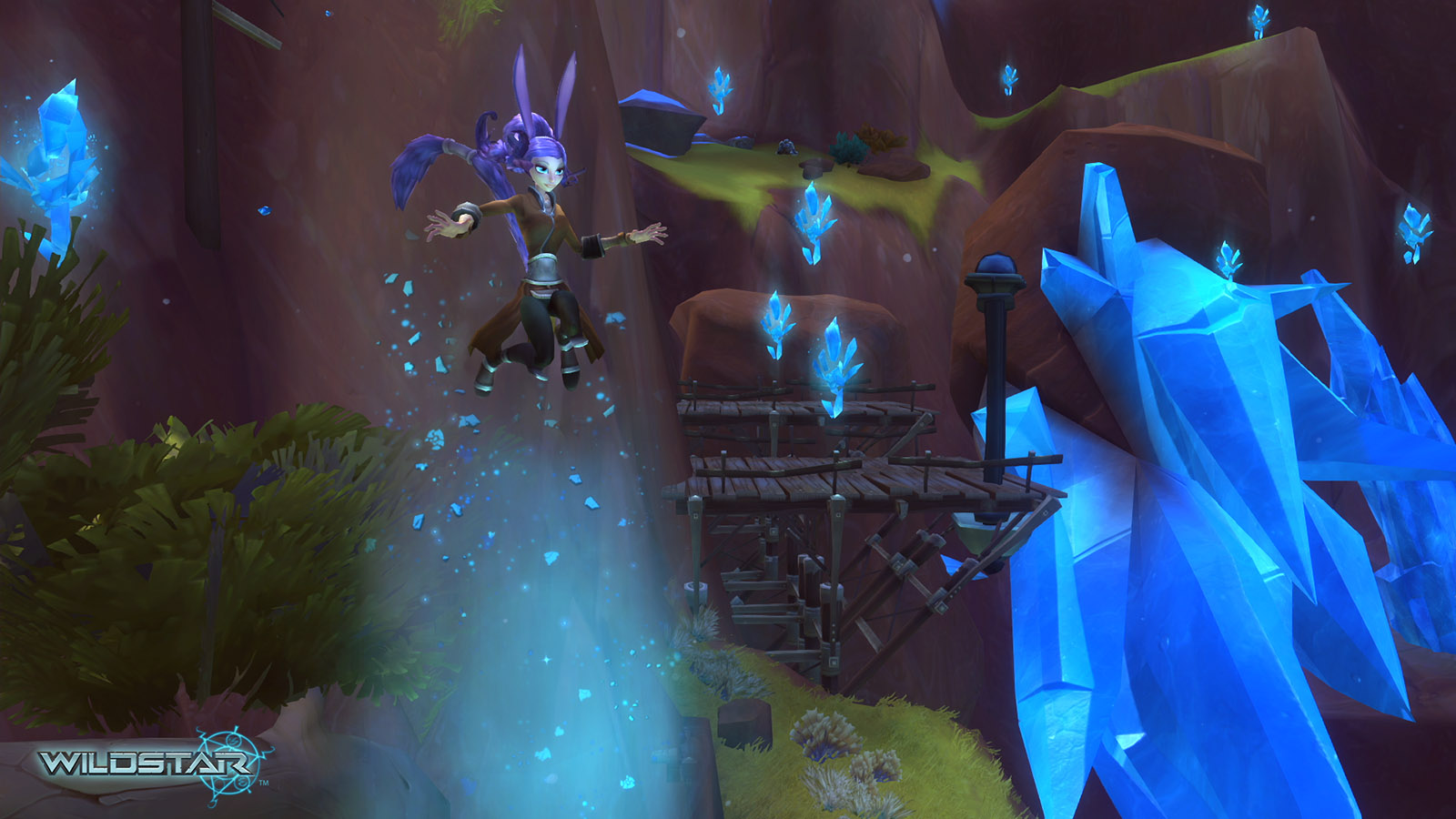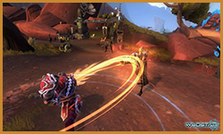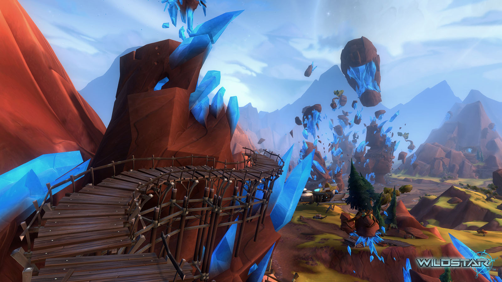 Algoroc is one of the 6 - 14 zones of WildStar on the Exile faction side. Algoroc had been through several iterations before me when I finally inherited it, and the work I am showcasing here is what ultimately made it into the shipped game. One of the unique things about WildStar is the ability for us to paint color as an overlay to the ground textures we would paint on to the terrain. This allowed us to create fine color detail and give the illusion of terrain features while keeping the ground flat enough for players to safely fight battles on. In Algoroc, I sculpted and re-sculpted many mountains, rebuilt the towns of Tremor Ridge and Gallow twice, and carved a giant hole in the ground to serve as an Eldan excavation site. It was as much of an adventure to build as it is to play! |